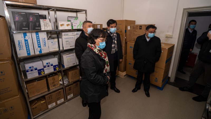 毛丽娟一行在徐汇校区总监控室听取了校园安全总体情况介绍,检查了实验15楼、实验12楼等实验室安全情况,并在第一食堂实地查看了寒假留校学生情况和防疫应急物资储备情况,对学校各项安全工作措施落实情况给予了肯定。