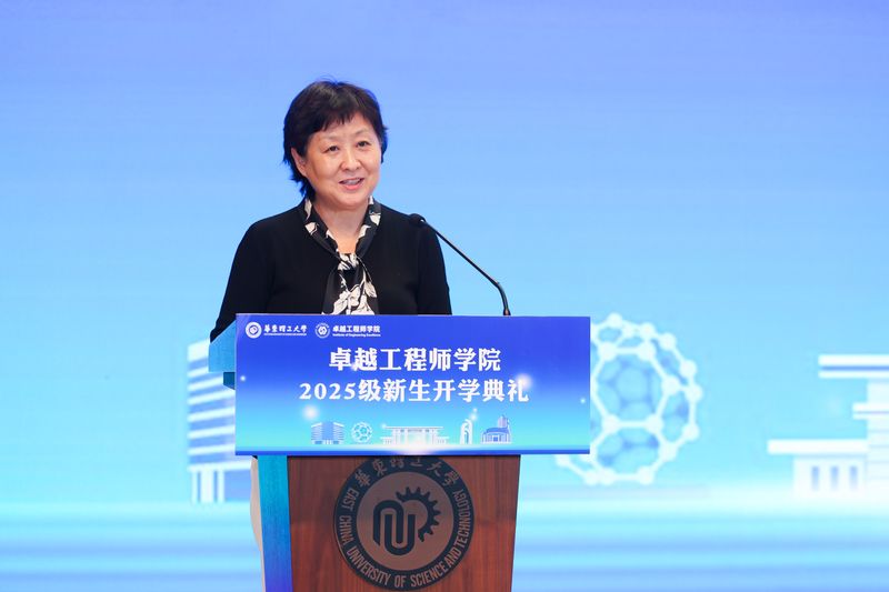 典礼在庄严的国歌声中拉开帷幕。王慧锋在致辞中向新生表示热烈欢迎,并向联培企业致以诚挚感谢。她指出,卓越工程师学院是学校响应国家“培养大批卓越工程师”战略部署的重要举措。学院将通过“校企双导师制”培养模式,让学生在真实场景中参与实践项目,锤炼解决复杂工程问题的能力,真正实现“把论文写在祖国大地上”。她对新生提出三点期望:一要心怀家国,传承华理人工程报国传统;二要砥砺奋进,在实践探索中锤炼过硬本领;三要深入产线,培养跨界融合能力。希望同学们以成为卓越工程师为目标,在服务国家战略的征程中书写青春华章。