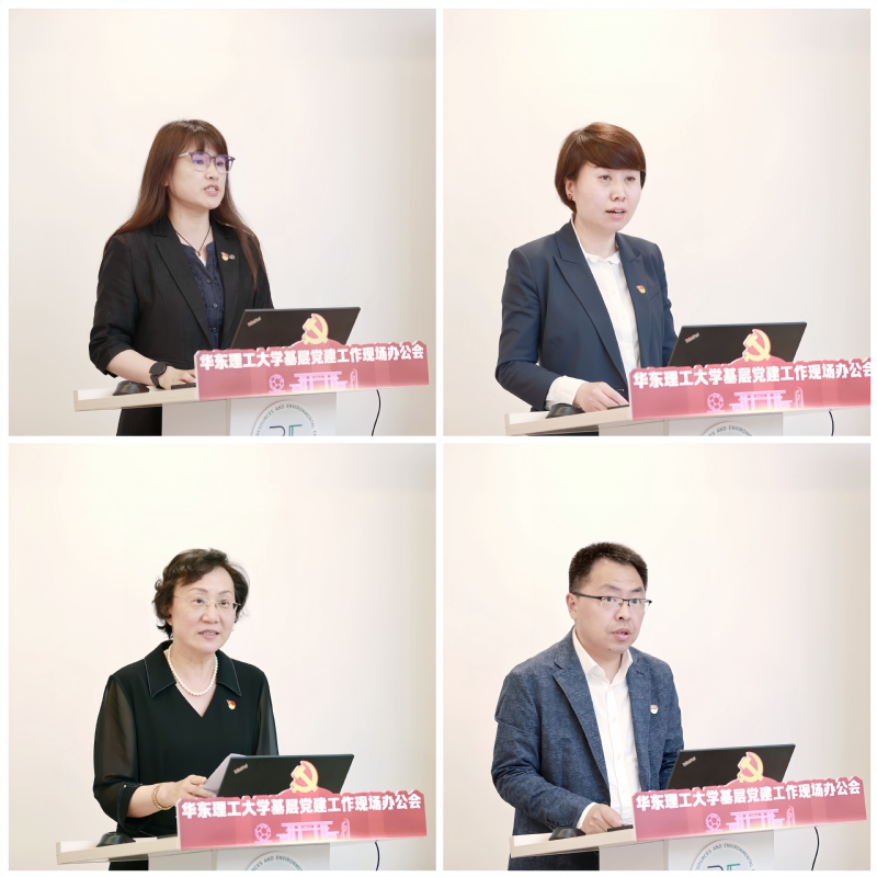 会上,化学学院党委书记张文清、资环学院党委书记修光利分别汇报了“全国党建工作标杆院系”和“上海党建工作标杆院系”建设成效。马克思主义学院党委副书记兼纪委书记卢杨、药学院药物科学系教工党支部书记黄瑾分别汇报了“全国党建工作样板支部”“上海党建工作样板支部”创建工作开展情况。机动学院博士生第二党支部书记聂文睿汇报了“全国高校百个研究生样板党支部”创建工作开展情况。教工部部长钱嫦萍、学工部部长崔姗姗、教务处处长黄婕、研工部部长孙洪锋等代表相关职能部处就做好基层党建工作作了交流发言。